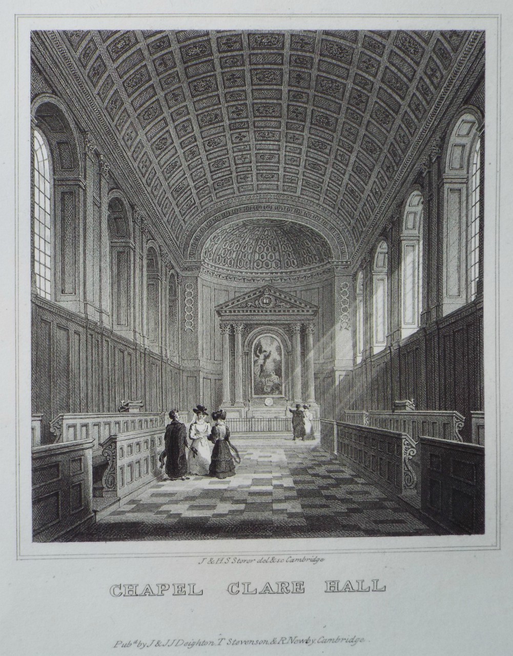 Antique Print - "Chapel Clare Hall" by J & H Storer published 1834 by J & J J Deighton, T Stevenson & R Newby, Cambridge.