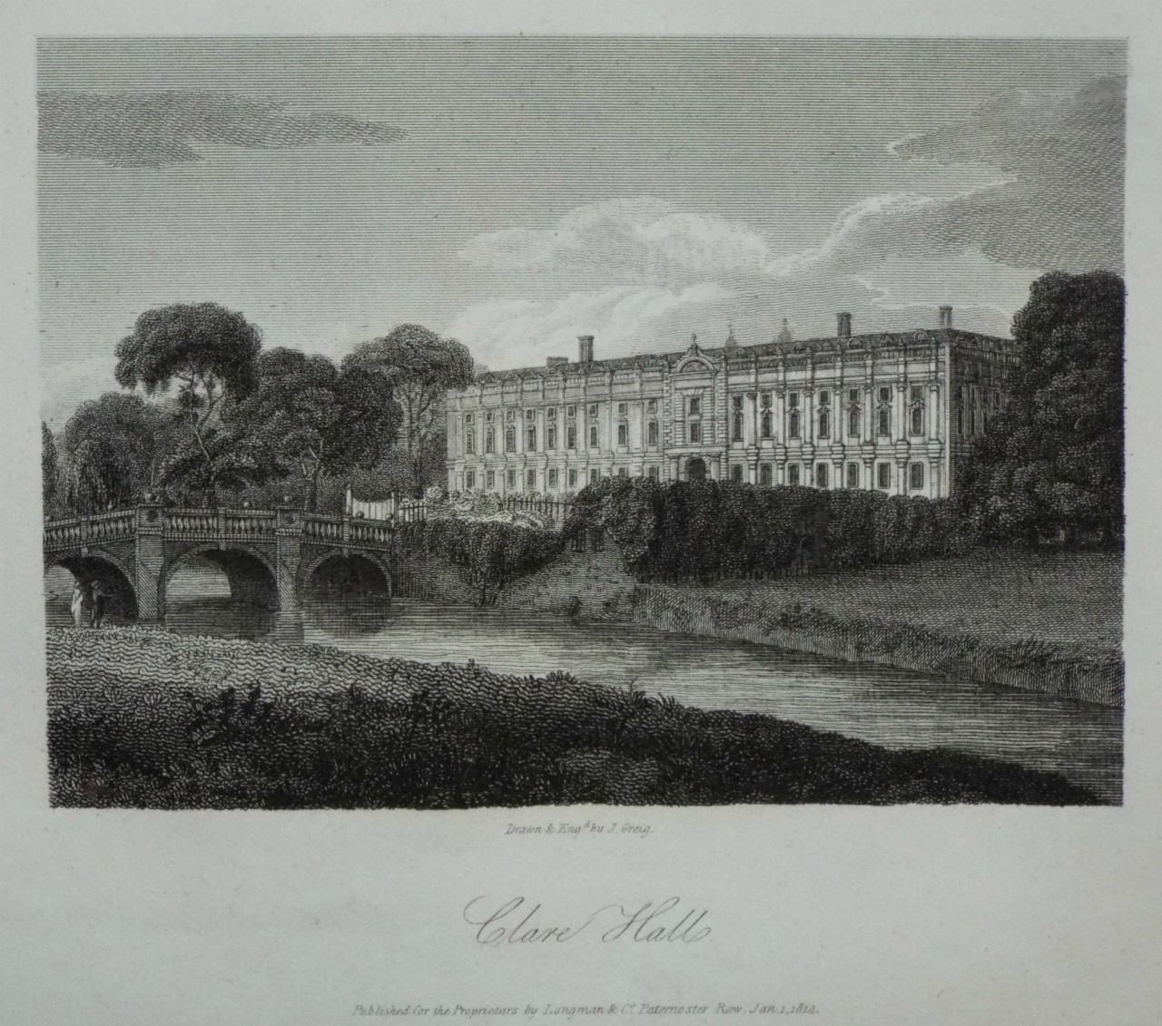 Antique Print - "Clare Hall." by J Greig published 1814 by Longman & Co, Paternoster Row.