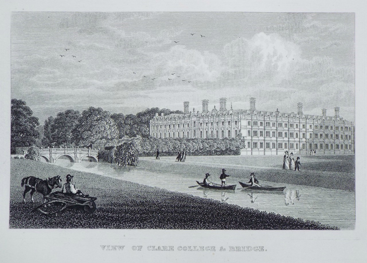 Antique Print - "View of Clare College & Bridge.".