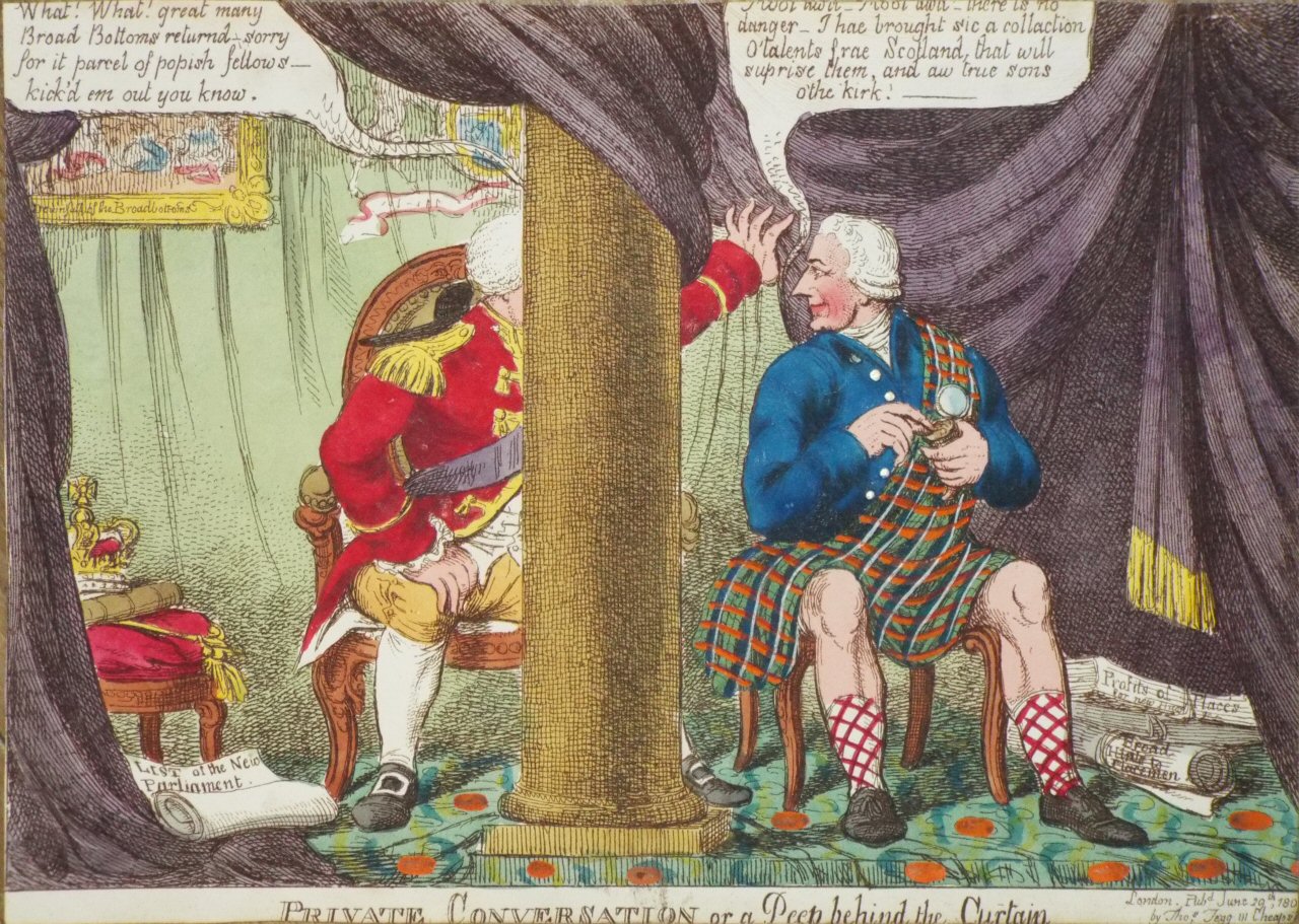 Antique Etching - "Private Conversation or a Peep behind the Curtain" published by Thomas Tegg, 111 Cheapside.