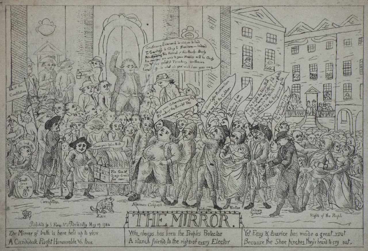 Charles James Fox is addressing an election meeting in Covent Garden.