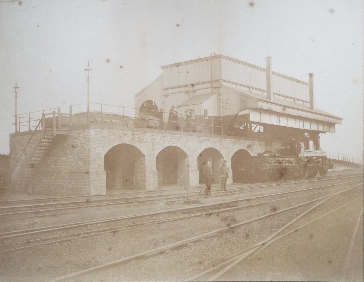 | The Break of Gauge at Gloucester. Trans-shipment of Goods from the Broad Gauge to the Narrow Gauge Carriages. Ref: P/25851