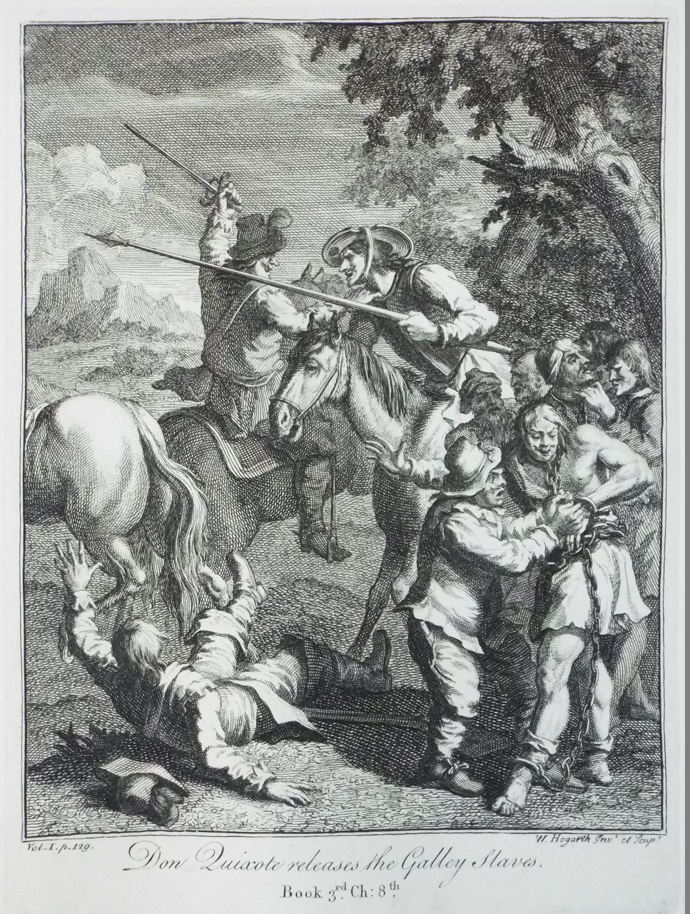 Don Quixote releases the Galley Slaves. Book 3rd. Ch: 8th.