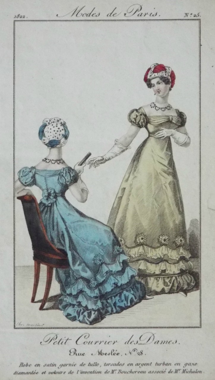 Robe en satin garnie de tulle, torsades en argent turban en gaze diamantee et velours de l'invention de Mr. Bouchereau associe de Mr. Michalon.