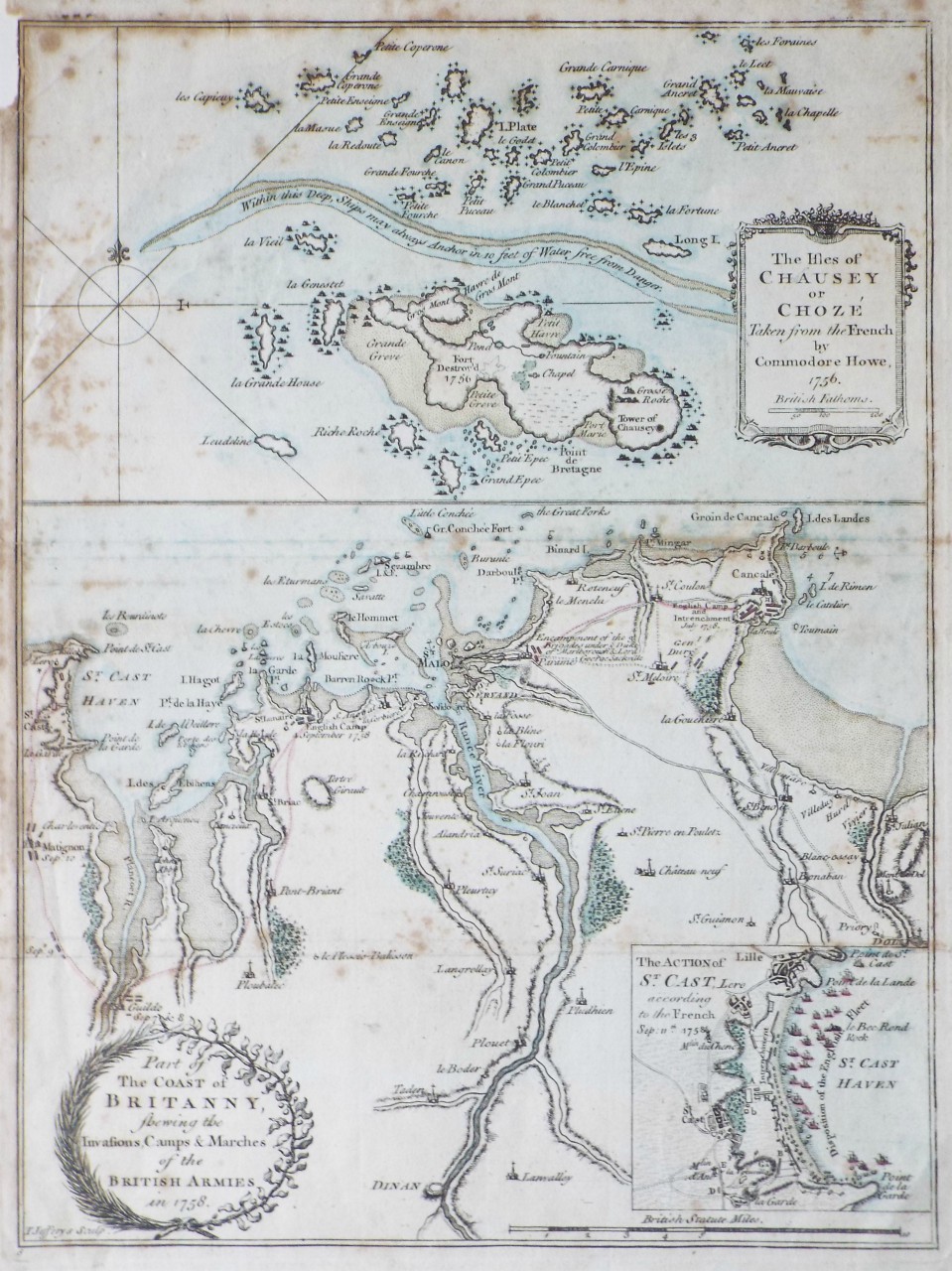 Part of the Coast of Britanny, shewing the Invasions, Camps & Marches of the British Armies in 1758. The Isles of Chausey or Choze Taken from the French by Commodore Howe, 1756