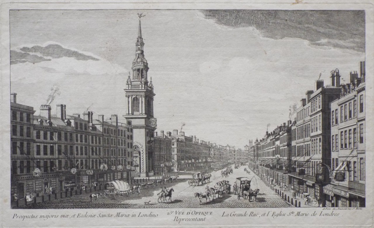 Prospectus Majoris Viae, et Ecclesiae Sanctae Mariae in Londino. Vue d'Optique Representant La Grande Rue, et l'Eglise de Ste. Marie de Londres.