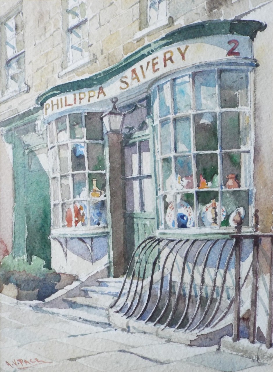 Elton House with Philippa Savery's antique shop in Abbey Green, Bath
