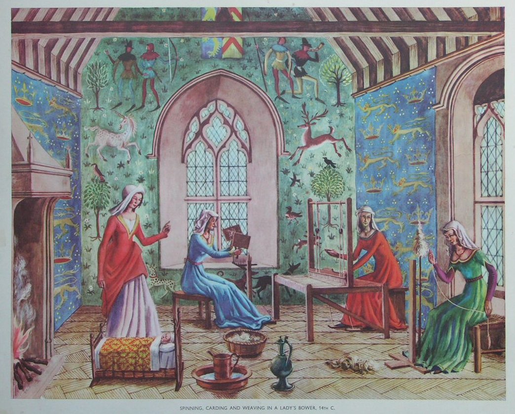 30 Spinning, Carding and Weaving in a Lady's Bower, 14th C.
